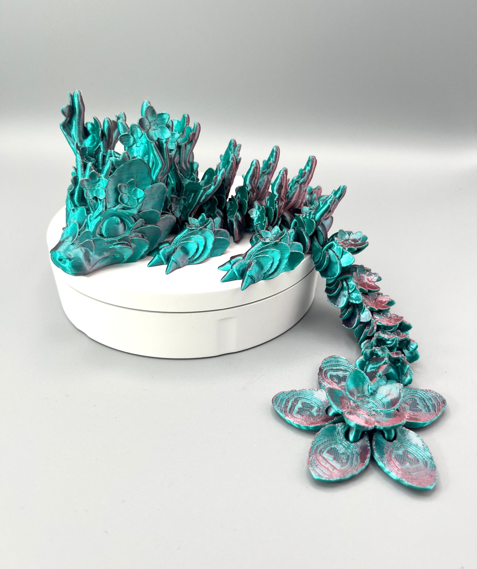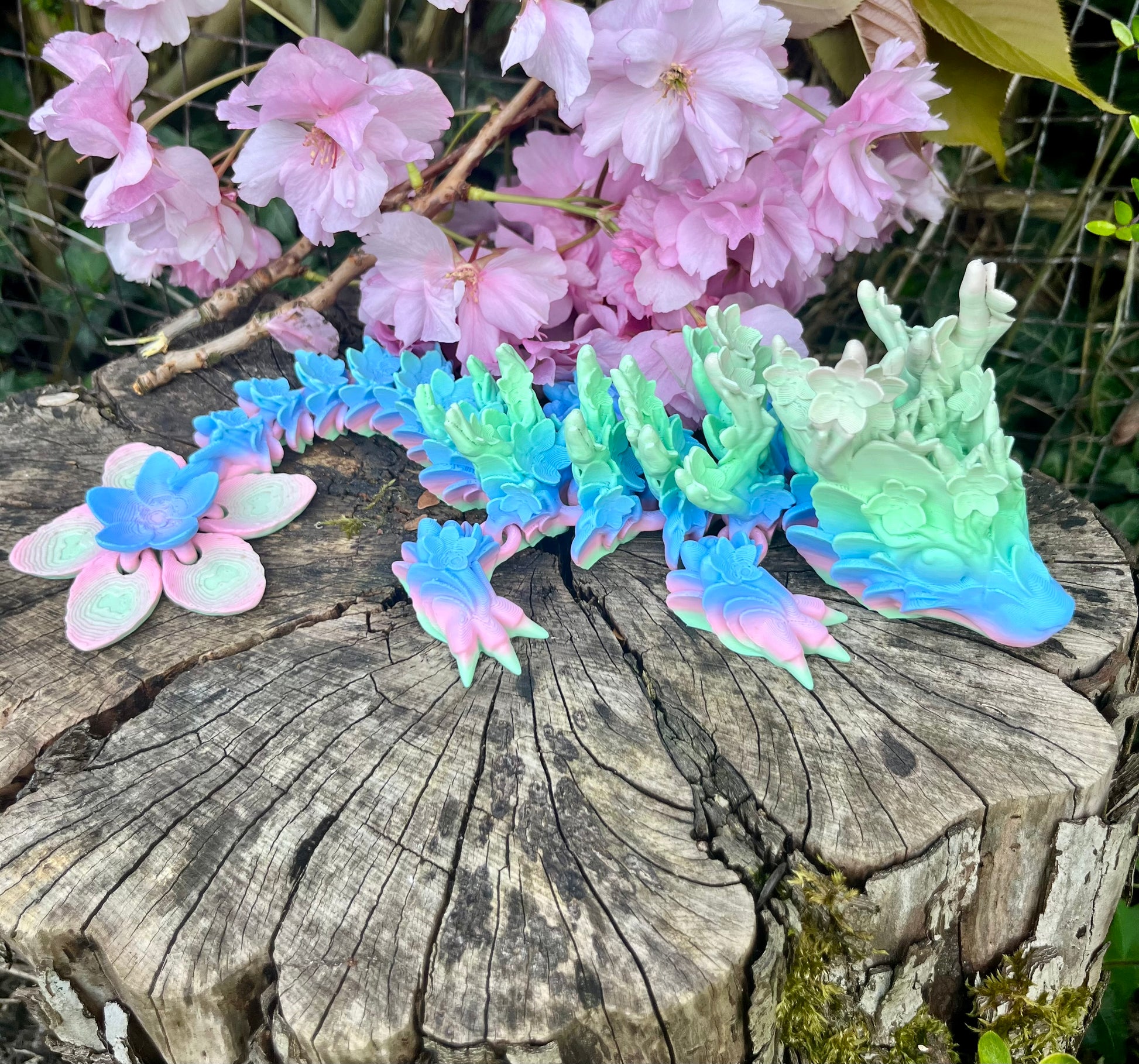 This beautifully detailed 3D-printed Cherry Blossom Dragon is adorned with gorgeous flowers across its body, which trail down to an eye-catching statement flower tail. 🐉🌸
