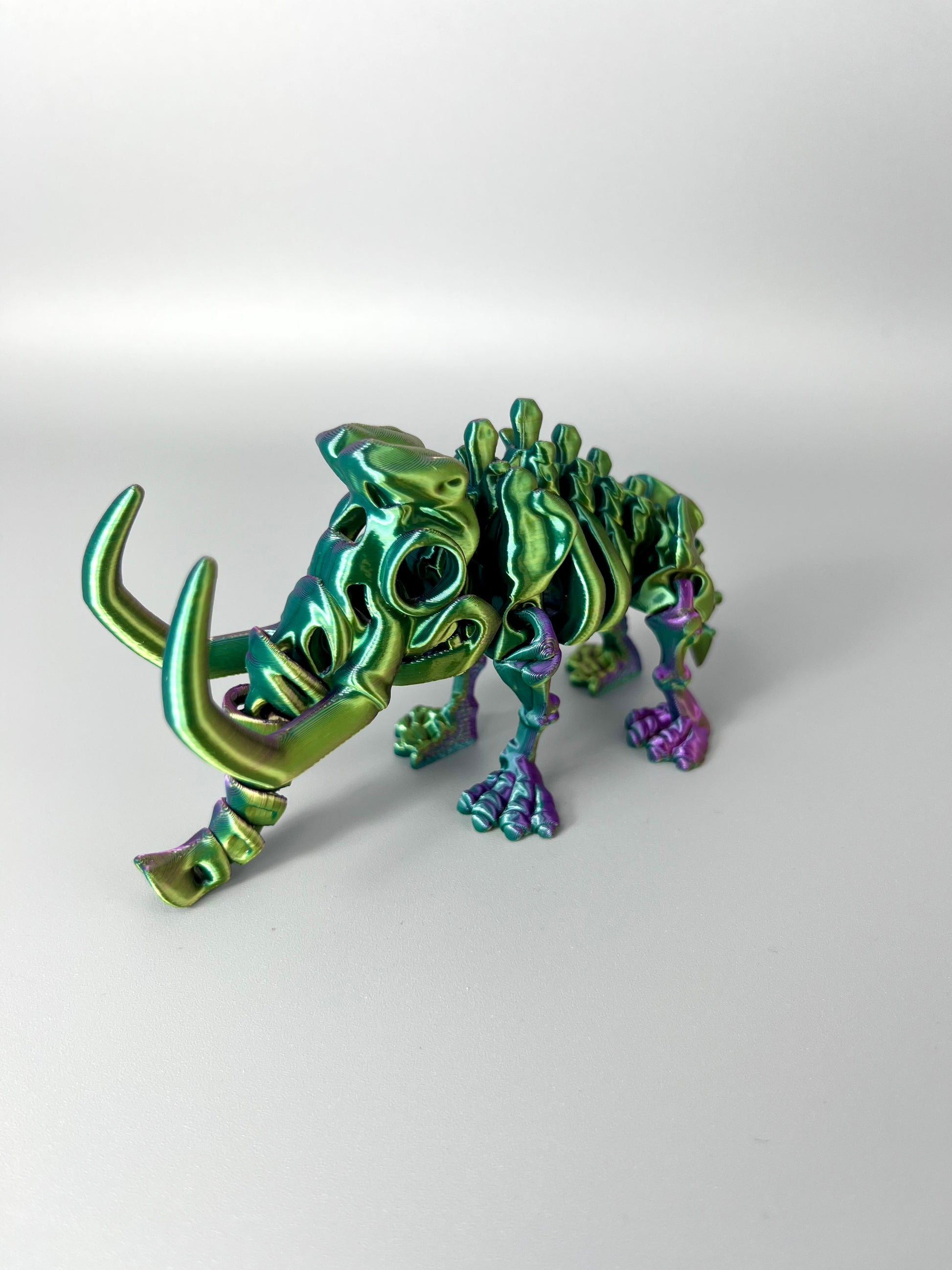 Featuring detailed bone structure, impressive curling tusks, and an elongated trunk, it captures the power and might of these ancient giants.